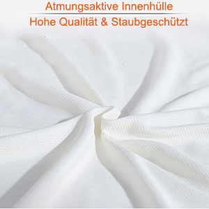 Dieses Kissen bietet eine Schutzbarriere, die von herkömmlichen Kissen nicht erreicht wird. Sollten Sie anfangs einen „frischen Schaum“-Geruch bemerken, ist dieser unbedenklich und wird nach einigen Tagen des Auslüftens verfliegen.