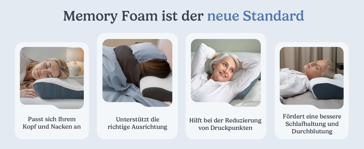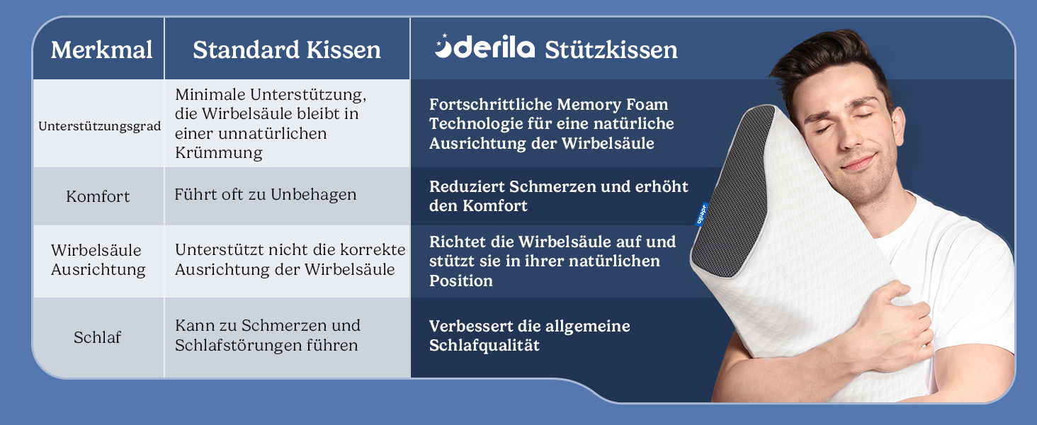 Derila Nackenkissen – Komfortables Memory Foam Kopfkissen für Seiten-, Rücken- und Bauchschläfer