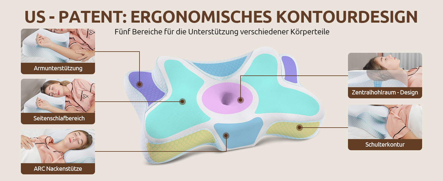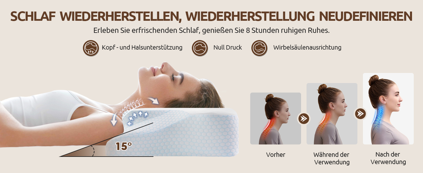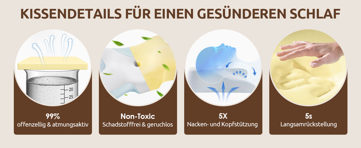 • Verbesserte Nackenunterstützung: Reduziert das Risiko von Nackenschmerzen und sorgt für eine erholsame Nachtruhe.
