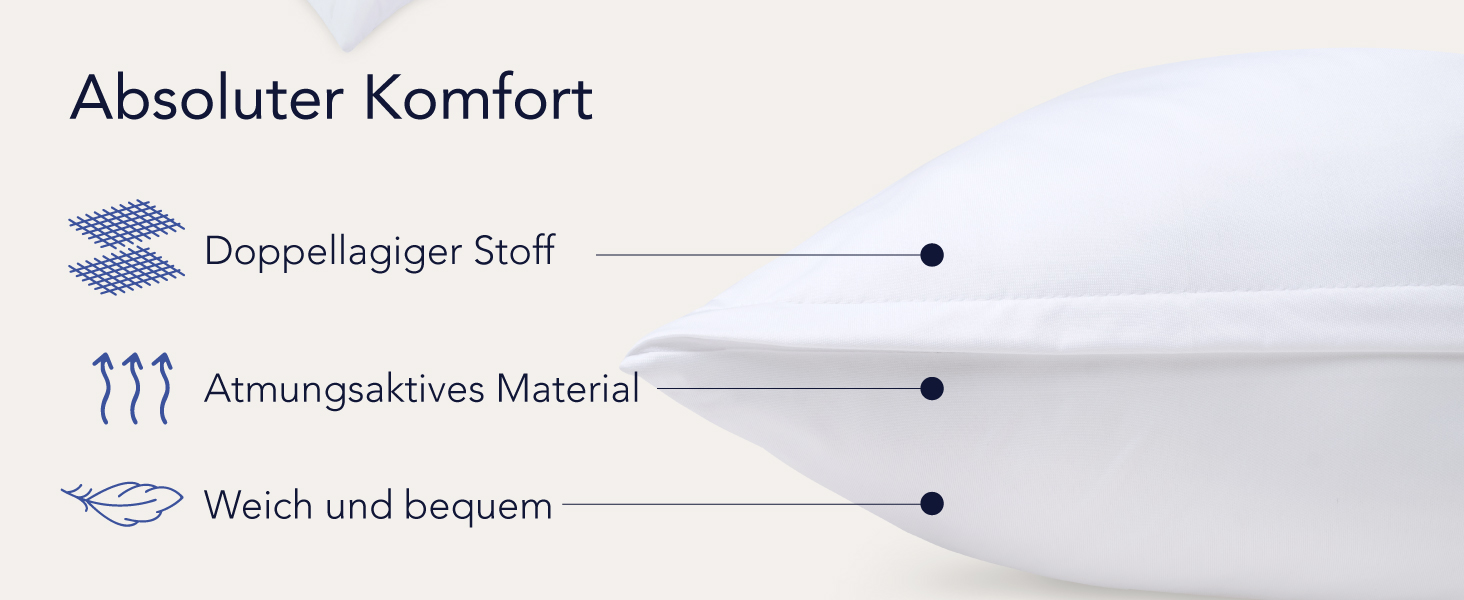 Dank der atmungsaktiven Eigenschaften des Kissenschoners wird die Luftzirkulation deutlich verbessert. Dies wirkt schützend gegen Schwitzen, besonders an warmen Sommertagen oder bei empfindlicher Haut. So bleiben Sie stets angenehm temperiert und können erholsam schlafen.