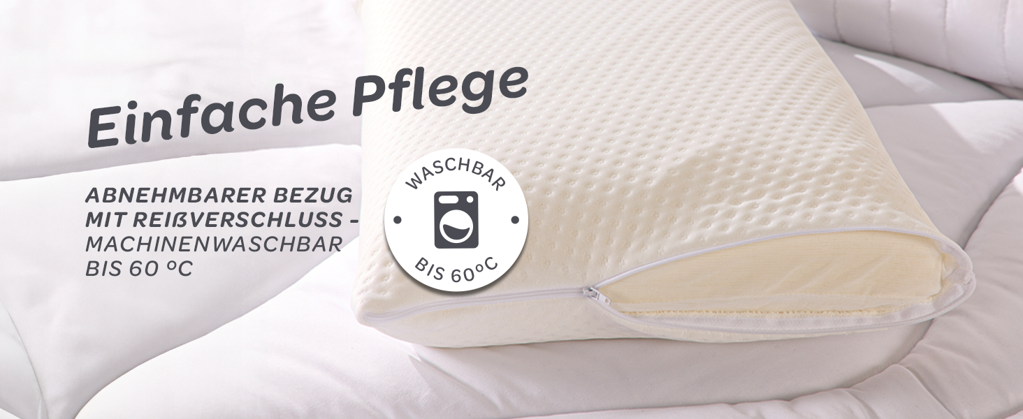 Ein weiterer Pluspunkt ist der maschinenwaschbare Bezug. Bei 60 Grad lässt sich der Bezug problemlos in der Maschine reinigen, was die Pflege des Kissens besonders einfach macht.