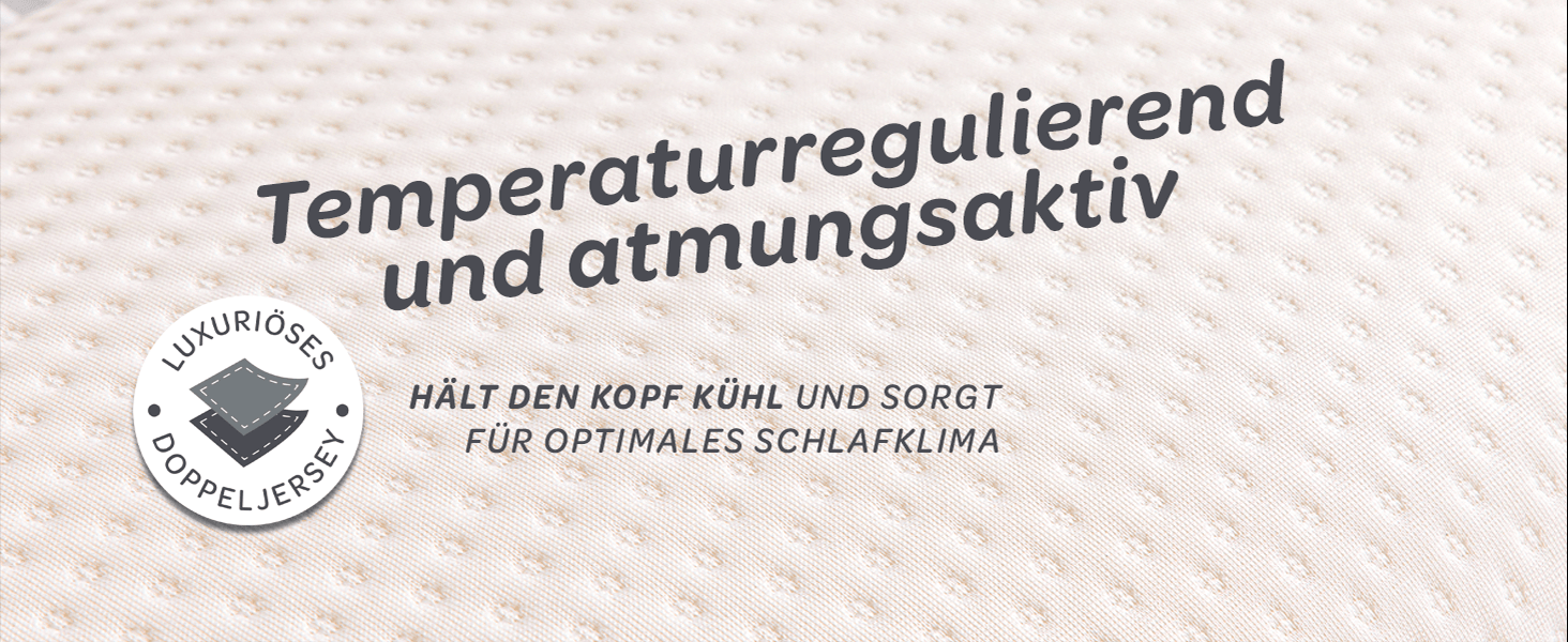 Der Bezug aus hochwertigem Doppeljersey, hergestellt aus 100% Polyester, bietet ein glattes und angenehmes Hautgefühl. Dieser Stoff vermittelt das Gefühl, wie auf Wolken gebettet zu sein, und trägt entscheidend zu einem erholsamen Schlaf bei.