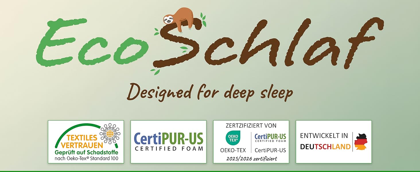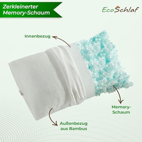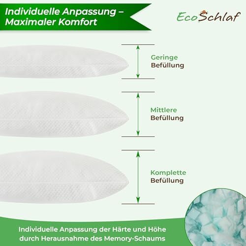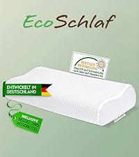 - EcoSchlaf Memory Foam: Hochwertiger Schaumstoff passt sich sanft an Kopf und Nacken an für optimalen Komfort.