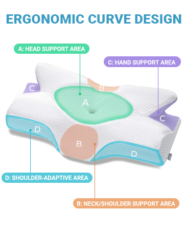 Das ergonomische Design des Elviros Kissen unterstützt die natürliche Körperkurve und sorgt für eine optimale Luftzirkulation. So gelingt es, Schnarchen zu reduzieren und einen tiefen, erholsamen Schlaf zu fördern. Die seitlichen Aussparungen bieten einen bequemen Platz für Ihre Oberarme, sodass diese in einem angenehmen Winkel ruhen können und Ihre Schulter nicht nach vorne gedrängt wird.
