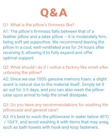 Die Verwendung von hochdichtem, langsam zurückfederndem Memory-Schaumstoff verleiht dem Elviros Nackenstützkissen einen erstklassigen Komfort und festen Halt während des Schlafens. Das Kissen behält seine Form und Festigkeit über lange Zeiträume hinweg. Hinweis: Der Memory-Schaum-Kern kann anfangs einen leichten Geruch aufweisen – wir empfehlen eine Belüftung für 3-5 Tage.