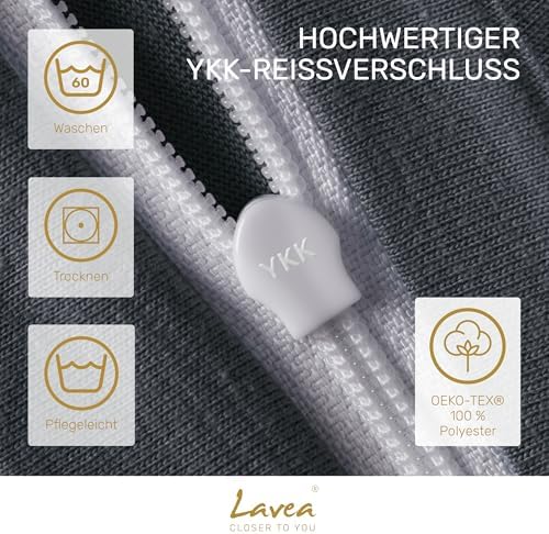 Ausgestattet mit einem hochwertigen YKK-Reißverschluss an der Seite, bietet unser Kopfkissenbezug nicht nur maximale Langlebigkeit, sondern auch eine sichere Halterung für Ihr Kissen. Der praktische Reißverschluss ermöglicht ein einfaches Be- und Abziehen des Bezugs, was ihn perfekt für Standard-Kopfkissen und längere Seitenschläferkissen macht.