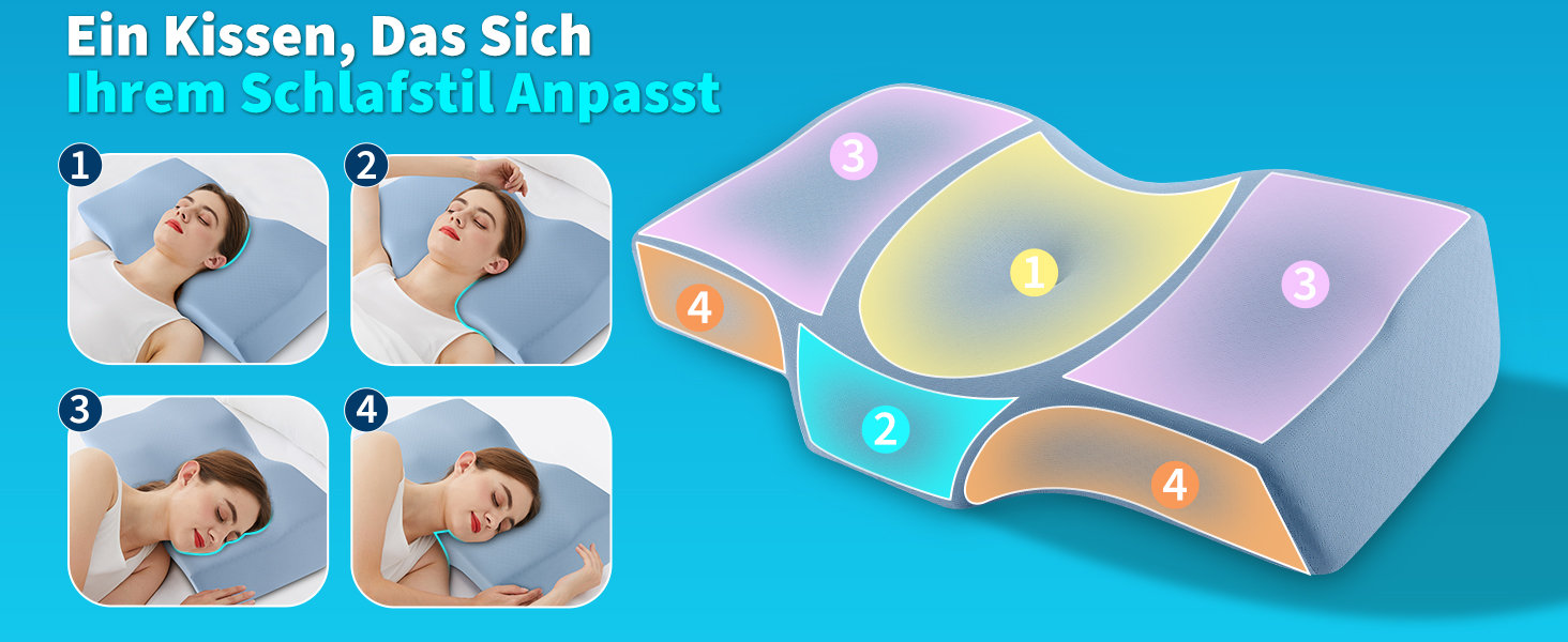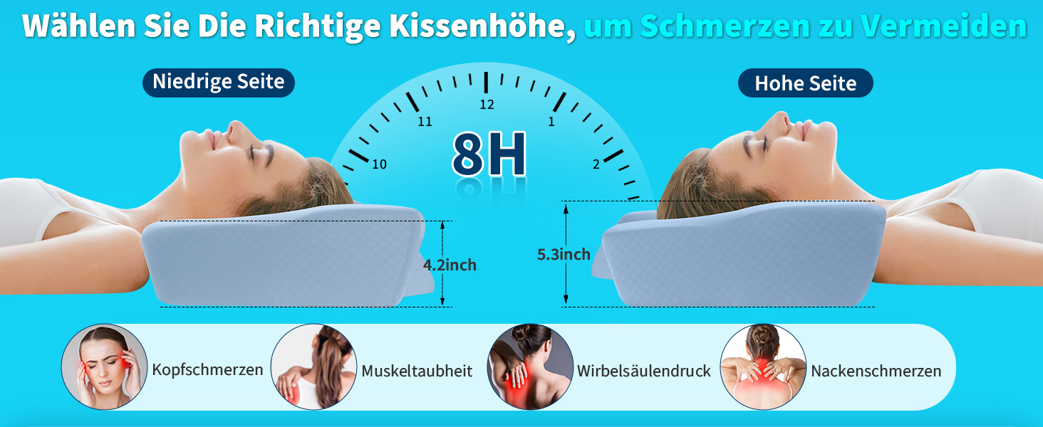 Erleben Sie erholsamen Schlaf mit unserem ergonomischen Nacken- und Schulterschmerz-Kissen. Speziell entwickelt für Seitenschläfer, Rücken- und Bauchschläfer, passt sich dieses Kissen perfekt Ihrer Schlafposition an. Die konturierte Form unterstützt die natürliche Ausrichtung der Wirbelsäule, entlastet Druckpunkte und reduziert Beschwerden, damit Sie keine Schulterschmerzen oder Nackensteifheit mehr haben.