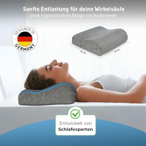 Unser ergonomisch gestaltetes Kissen passt sich perfekt an die Bedürfnisse von Seitenschläfern und Rückenschläfern an. Die speziell geformte Nackenwelle ist darauf ausgelegt, die Halswirbelsäule (HWS) im Sitzen optimal zu unterstützen. So helfen Sie effektiv, Nackenverspannungen und Schmerzen vorzubeugen, damit Sie ausgeruht und voller Energie in den Tag starten können.