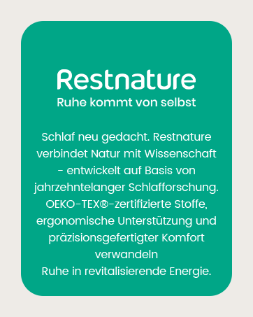 Das Restnature Kissen nutzt eine fortschrittliche Memory-Foam-Technologie, die sich intelligent an Ihre Bedürfnisse anpasst. Unsere 5-Sekunden-Slow-Response-Technologie in Kombination mit einer speziellen Wabenbelüftungsstruktur sorgt für optimale ergonomische Unterstützung. Ideal für Seitenschläfer, die eine komfortable und gesunde Schlafposition suchen.