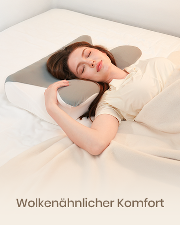 Dieses ergonomische Kopfkissen wurde wissenschaftlich optimiert, um sich harmonisch an alle Schlafphasen anzupassen. Die verschiedenen Schichten aus Memory-Foam entlasten Ihre Schultern in der Leichtschlafphase, während die 3D-Kontur die Wirbelsäule während der Tiefschlafphase stabilisiert. Die Anti-Druck-Zone sorgt dafür, dass sich auch unruhige Seitenschläfer entspannen können, ohne ungewollte Bewegungen zu verursachen.
