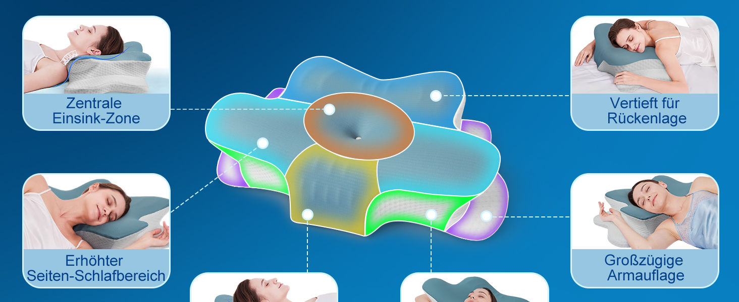 • Ergonomisches Design in Schmetterlingsform: Reduzierung von Nackenschmerzen und optimale Unterstützung für Kopf und Nacken für einen erholsamen Schlaf.