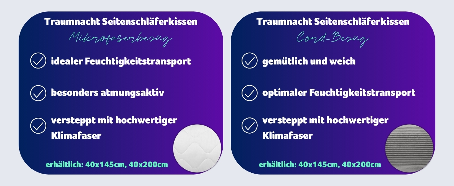 Traumnacht Seitenschläferkissen mit Cord-Bezug, waschbar & leicht, ideal für gemütlichen Schlafkomfort zuhause
